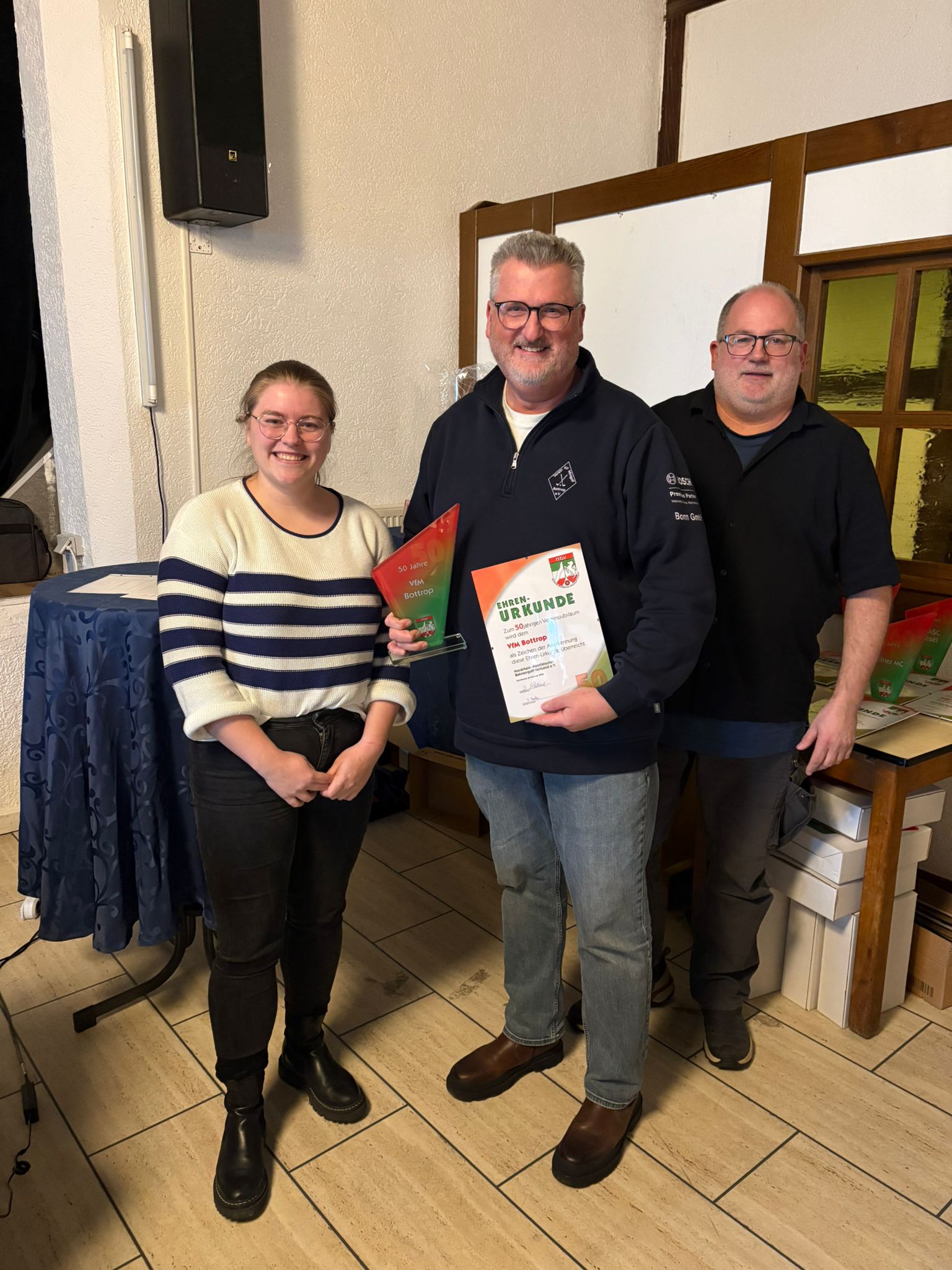 Zum Abschluss möchten wir anmerken, dass von den heute geehrten Vereinen leider lediglich eine Vertretung des VFM Bottrop persönlich anwesend sein konnte. Wir freuen uns jedoch sehr über diese Teilnahme und danken herzlich für die Präsenz.